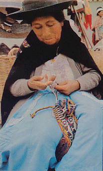 is a pure hand-braiding technique requiring no assistance of tools except for an optional beater. Every other working ends of the threads are paired and the paired ends connected thus forming loops rather than being separate as in the case of most other braiding techniques. One end of the bunched braiding threads is fixed on a support, and you mount each loop on a finger of the hands (the finger-held method). Or you may slip the sequentially arranged loops around the hands (the hand-held method). To make a braid, you exchange the loops, one at a time, between two hands following a prescription. The technique’s ability of efficiently making uniformly patterned braids is beyond one’s imagination.